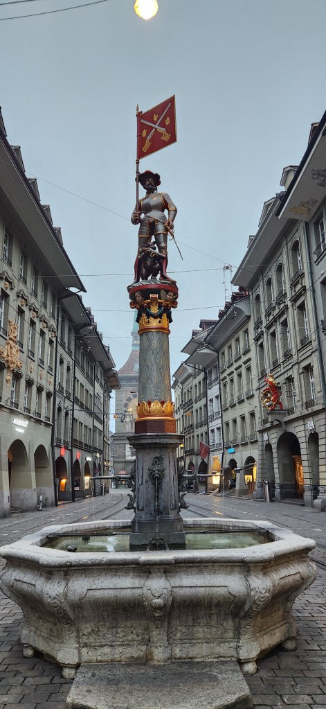 I was planning on spending the day in Switzerland, but my time was cut short by the cold weather and I decided my time would be more pleasantly spent further south. However, I did still manage to spend a bit of time in Bern before I caught the train to Domodossola, Italy. I actually arrived quite early in the morning, but was very underprepared for the cold weather, so spent a while inside the train station (which was still cold) before committing fully to heading out. Bern being the capital of Switzerland was somewhat surprising to me. It’s a much smaller city than Zürich, for example, and definitely feels smaller too. The area of Bern that I was able to explore in my short time felt relatively untouched by the present, a preserved image of history. Though I don’t know the exact ages of what I saw, the style of the statues and buildings came from a time when there was a bit more focus on complexity and detail. It was also very colourful, even on a cold, grey day.
