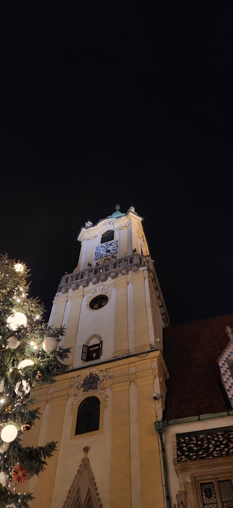 Luckily, I stumbled across the old city, which was where I knew I would find things I would like to see. There was also a Christmas market, which was probably the highlight for me. I really felt like I experienced the culture there: hearing people laughing and talking or singing along to music. I smelled the delicious food being prepared there as well and eventually gave in and tasted some too. Very good. I couldn’t tell you what I ate though because I don’t speak Slovak. Another thing that I saw that stood out to me was a church building that I came across with a cool tile pattern around the windows. It wasn’t as ornate as many of the gothic churches I explored, but it was different, so that was cool for me to see. I also visited the inside of another church, which was nice. Something I noted was that though I wasn’t the only tourist in there, most of the people inside the church when I visited it were using the space to pray. In the more eastern countries I visited, they seemed to have more of a tie to religion, which I found cool. Though I really enjoy the large, impressive churches everywhere, many of them seem like commercialized tourist attractions and just aren’t as authentic as this random small church in Bratislava. I guess both have an appeal for different reasons. After that, I took the train back to Wien.