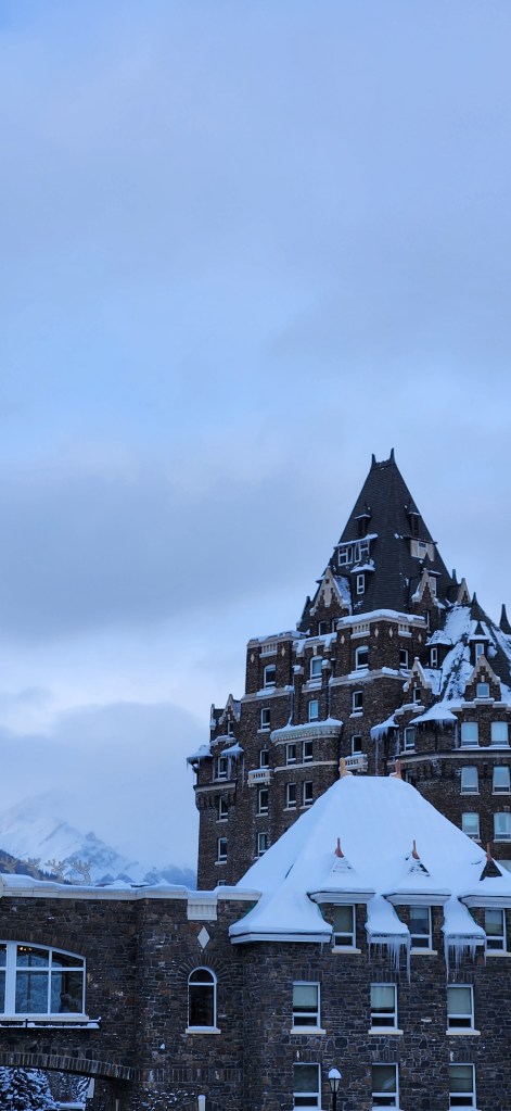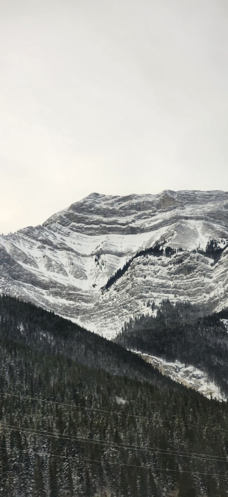 Our fourth day brought us to Banff, right in the mountains. Even the drive there was impressive, as we drew nearer and nearer to the snowy peaks and witnessed their grandeur rising up on either side of the road. We passed through small towns on the way and realized how unreal it must be to wake up every day with a mountain on your doorstep. For us from eastern Canada, this was a very exciting day trip. When we got to Banff, we spent a bit of time exploring the town, walking its streets and poking into stores. Though a small town, it was quite impressive and beautiful with the mountains as its backdrop. We grabbed lunch and headed to the famous Fairmont Banff Springs hotel, where we split into a group of those who wanted to hike in the area and those who preferred the warmth inside the castle-like hotel. I went with the hiking group, where we took snowy paths through the woods to scenic views of the mountains and river. It was still a bit chilly, but thankfully not as bitterly cold as the past days had been. Thankfully, after the hike, I did get a bit of time to walk around the interior of the expansive hotel. The whole hotel is beautiful, taking you back in time with intricate details and decor. Finally, we left the mountains, taking them in as much as we could out of the van window on the return journey.